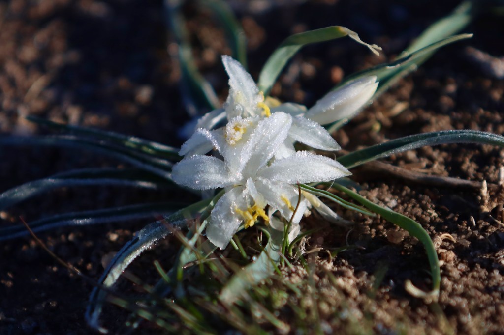 A spring frost had clouded the skies and left the wildflowers and tree blossoms chilled. But I was thrilled to see the abundant return of the sand lilies… sprinkled with frozen water. These precious, low, star-shaped blossoms are both beautiful and resilient. It was a sweet reunion. I smiled at all the sand lilies as I greeted them, “good morning.”